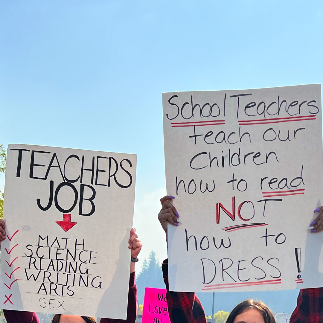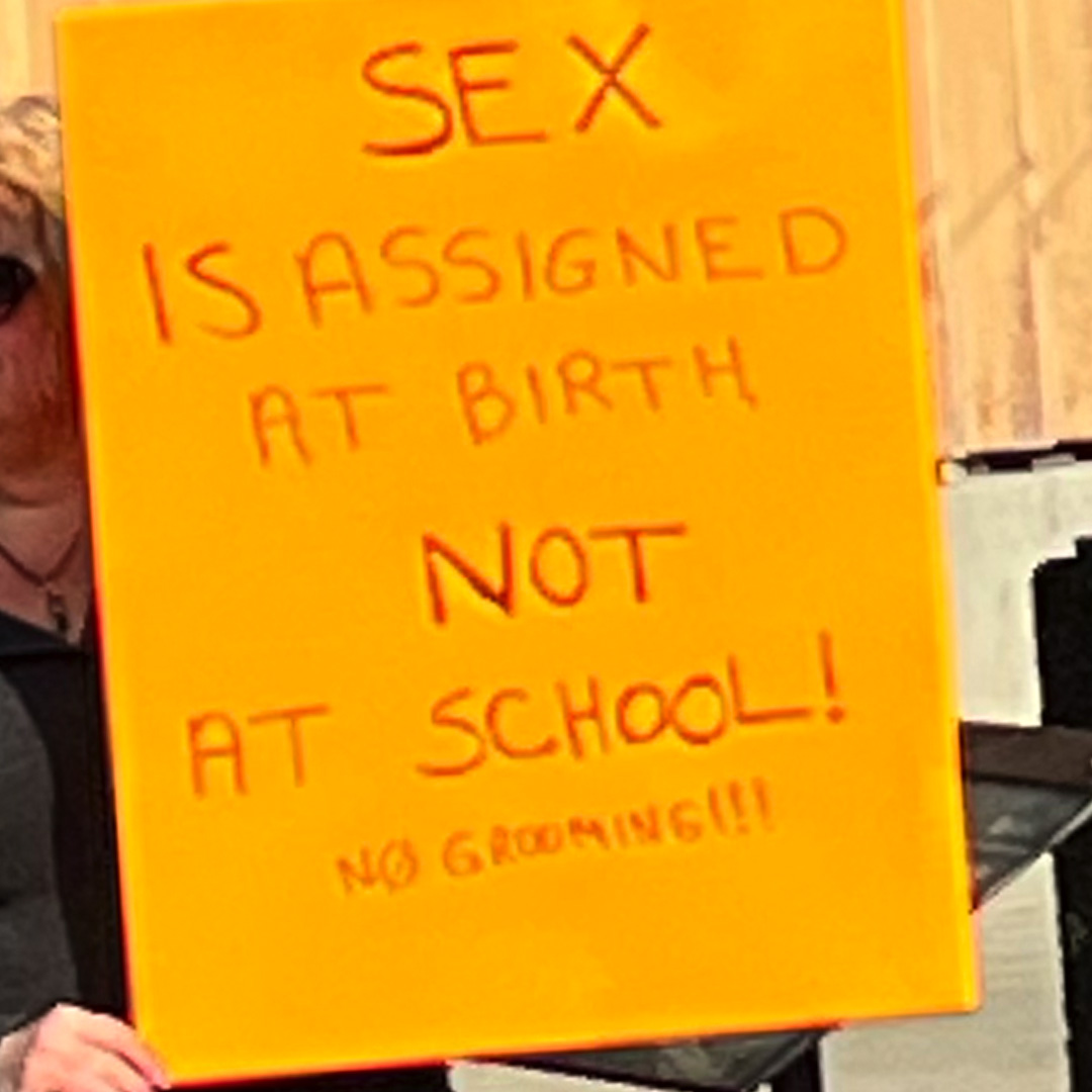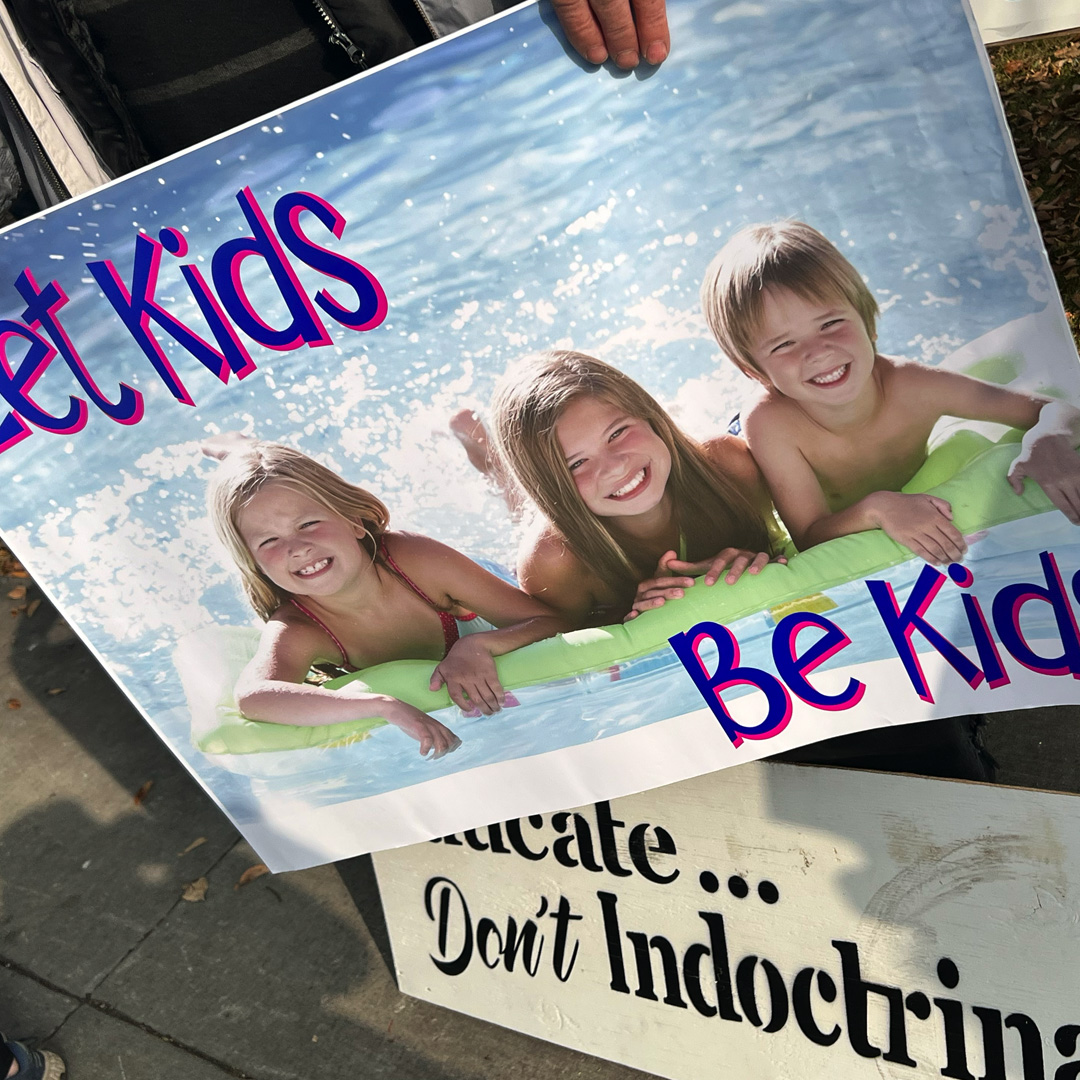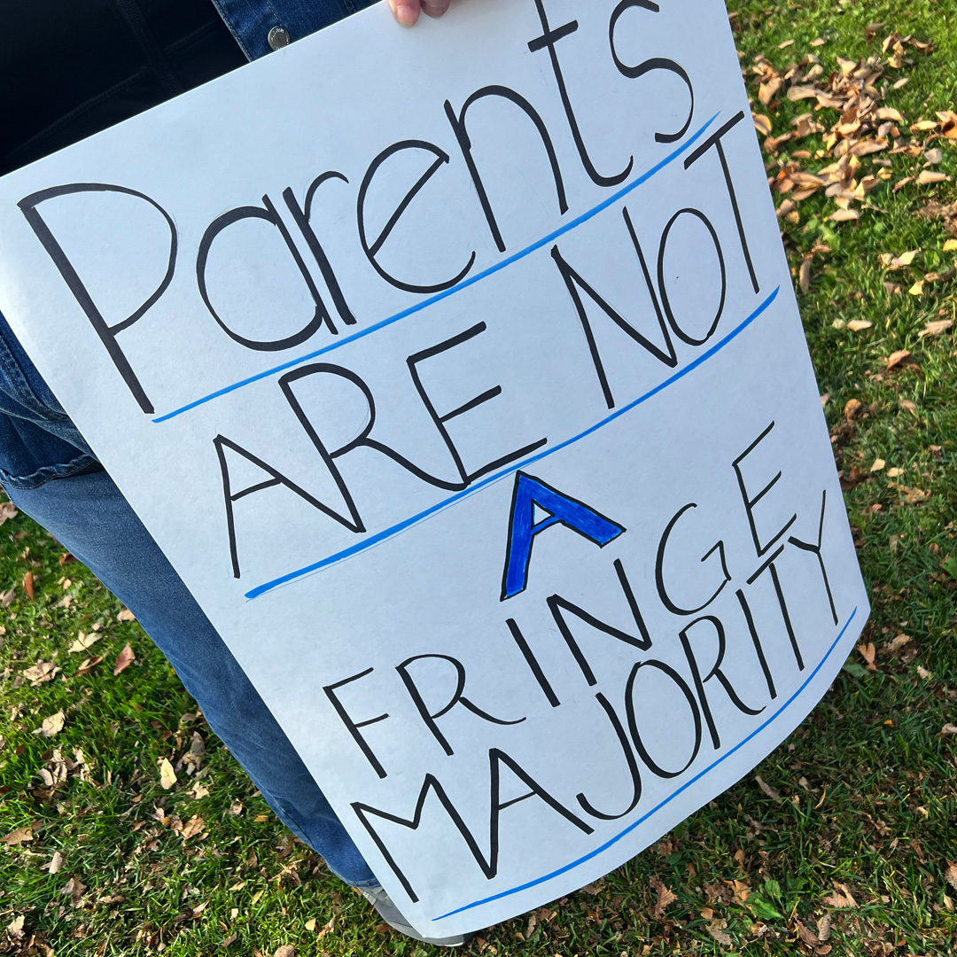 One sign addressed a concern around academics: “Teach Biology Not Ideology”. As academics become displaced, parental access is threatened as well. New policies refuse to affirm the natural gender on a child’s birth certificate and refuse to disclose to parents pseudo-identities that their child might secretly be living under while at school.